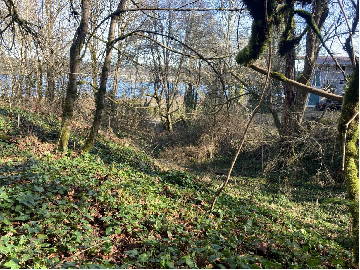 The site is currently dominated by invasive vegetation, including English ivy, Himalayan blackberry, cork elm, and reed canary grass, which has substantially reduced native plant diversity, habitat complexity, and water quality functions. Restoration activities will include invasive species removal, installation of large woody debris and erosion‑control features, and replanting with diverse native riparian and wetland vegetation. Long‑term stewardship will be provided by Olympia Ecosystems staff, partners, and volunteers.