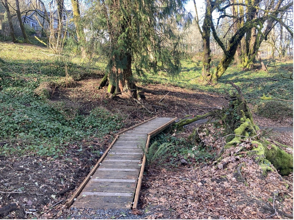 Project Need: The project area lies along a spring‑fed tributary on the northern edge of the West Bay Woods Preserve, immediately upstream of Budd Inlet. The tributary captures stormwater runoff from an adjacent neighborhood, making this site a critical intervention point for protecting downstream water quality.