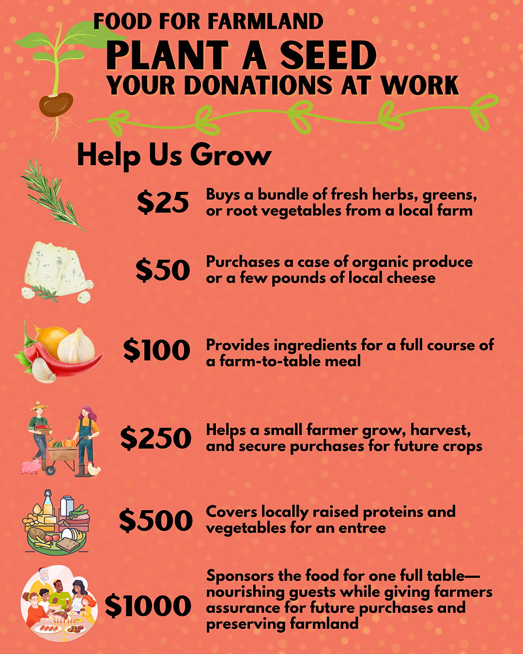 This fall, the Community Farm Land Trust (CFLT) is launching the Food for Farmland Fund to raise money for our annual Farms Forever dinner—a farm-to-table celebration that sustains our mission throughout the year.